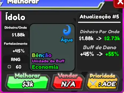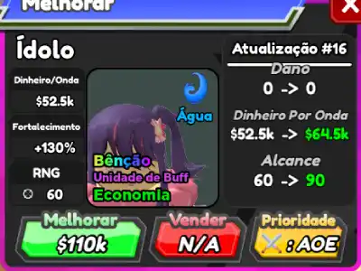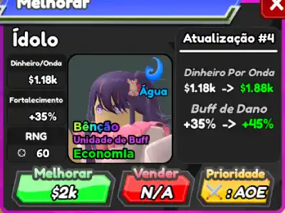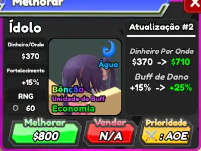 Além de bastante dinheiro ela dá um buff no seu time já desde o início, é colocar e bufar. Seu buff pode chegar até 250%. Ela não pode ficar fora do seu time.