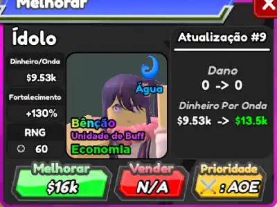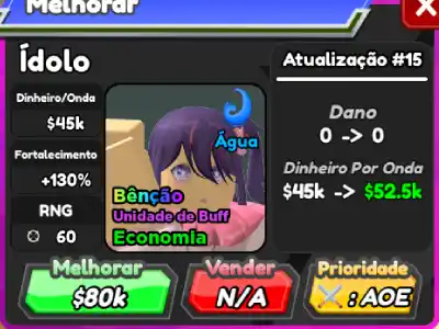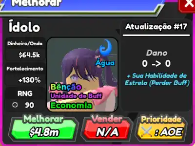 Ai Hoshino do anime Oshi No Ko é a personagem Idol 6 estrelas em All Star Tower Defense. Uma personagem meta do jogo para farm e boost.