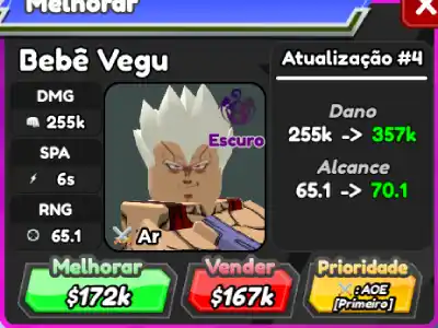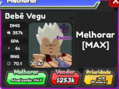 Baby Vegu é um personagem aéreo 6 estrelas de All Star Tower Defense baseado em Baby Vegeta de Dragon Ball GT.