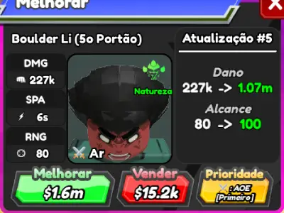 Boulder Li (5th Gate) é um personagem terrestre de All Star Tower Defense baseado em Rock Lee do anime de Naruto.