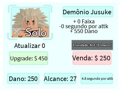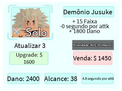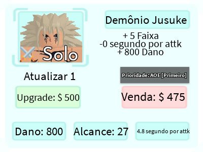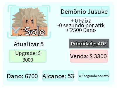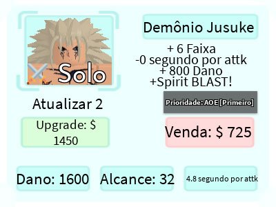 Demon Jusuke é um personagem terrestre 5 estrelas de All Star Tower Defense baseado em Raizen, ancestral de Yusuke Urameshi, do anime Yu Yu Hakusho.