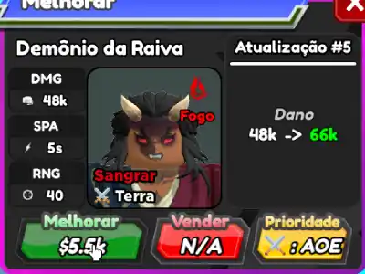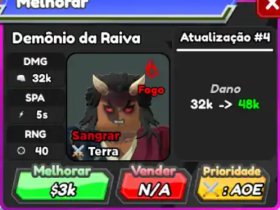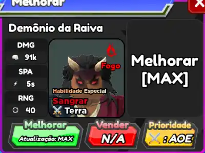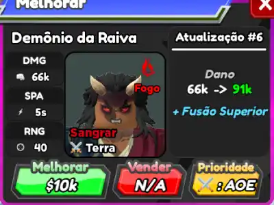 No seu último upgrade o Demônio da Raiva libera o botão de Fusão Superior que junta todos os demônios e seus poderes em um personagem só.