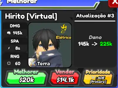 Hirito (Virtual) é um personagem terrestre 5 estrelas de All Star Tower Defense baseado em Kirito de Sword Art Online.