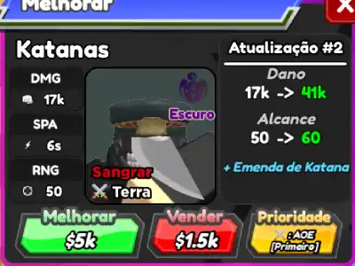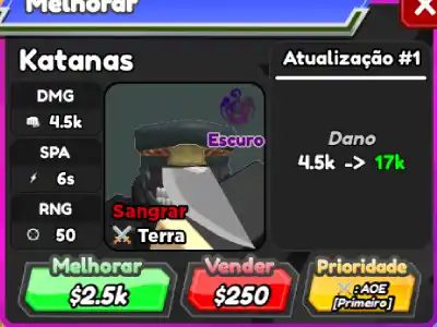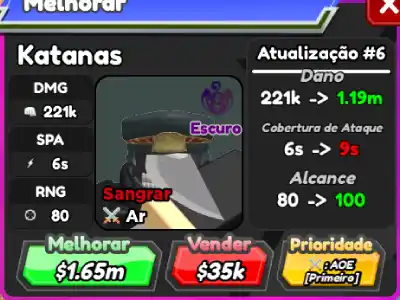 Após seu quinto upgrade Katanas passa a atacar inimigos aéreos.