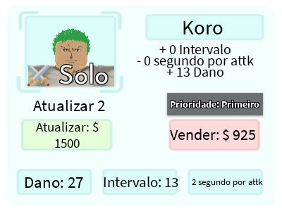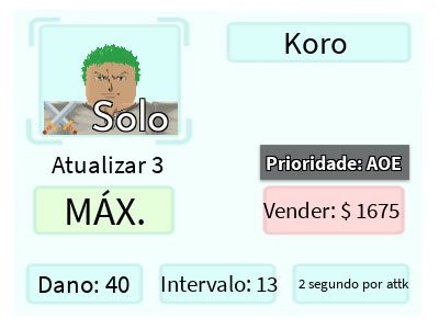 Koro é um personagem terrestre 3 estrelas de All Star Tower Defense baseado em Zoro de One Piece.