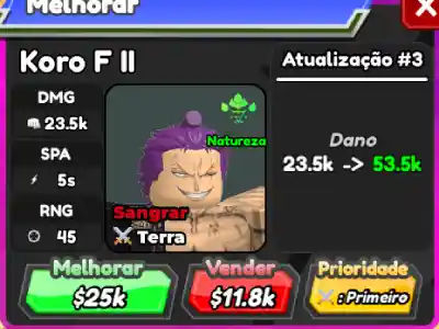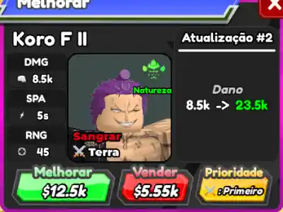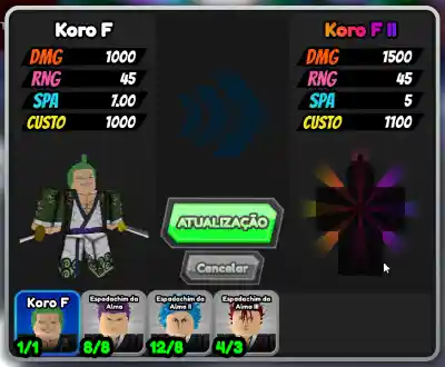 Pra fazer a evolução do Koro F II é preciso é preciso de 19 Espadachins da Alma o que te faz jogar muito story mode. Minha dica é pega-los no Banner G com as moedinhas, deu muito menos trabalho.