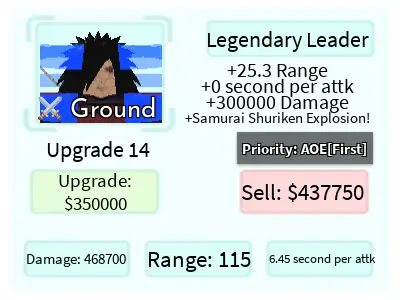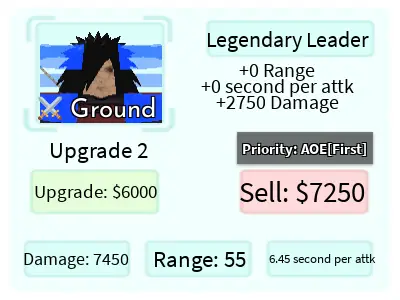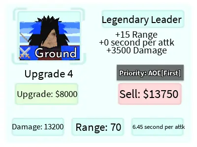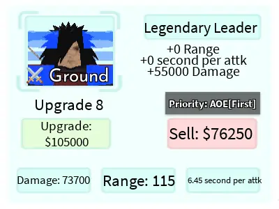 Legendary Leader é um personagem híbrido 6 estrelas de All Star Tower Defense baseado em Madara Uchiha de Naruto Shippuden.