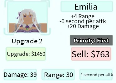 Depois de utilizado este personagem pode ser vendido pela metade do custo de uso inicial mais upgrades.