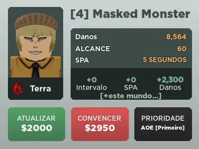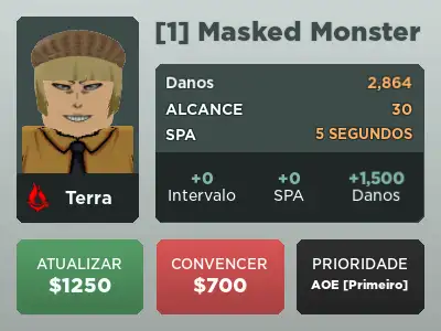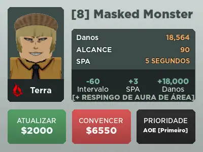 Masked Monster é um personagem terrestre 6 estrelas de All Star Tower Defense baseado em Shinji Hirako de Bleach.