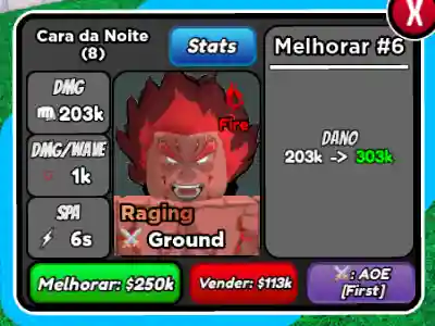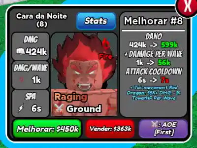 Ele é um personagem de altíssimo dano como no anime, mesmo no level 1, mas assim como ele quase morreu com tanto poder você também pode morrer no jogo. É que a cada onda ele tira um pouco de vida da torre e quando você menos percebe, perdeu a partida.