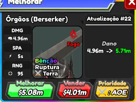 Ele possui habilidade especial de Ruptura no seu vigésimo upgrade, que é acionada automaticamente batendo a cada dois segundos nos inimigos dentro de sua área de ataque por 24 segundos.