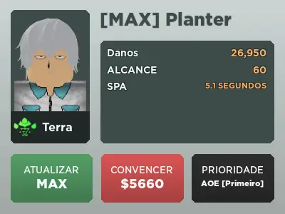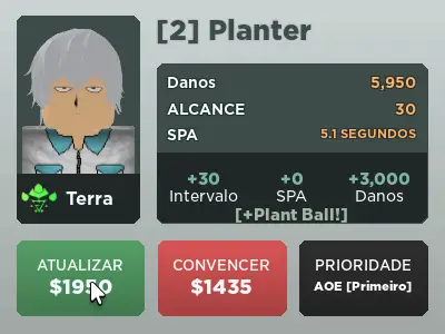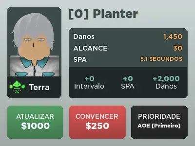 Planter é um personagem terrestre 6 estrelas de All Star Tower Defense baseado em Toshiki Minegishi de Mob Psycho 100.