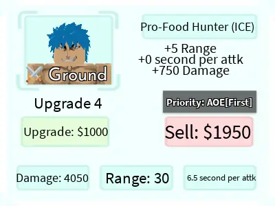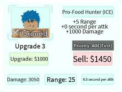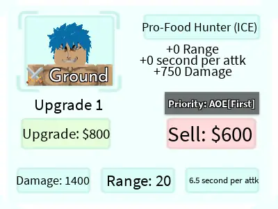 Pro-Food Hunter (ICE) é um personagem 4 estrelas de All Star Tower Defense baseado em Toriko de Toriko.
