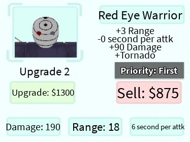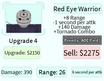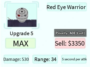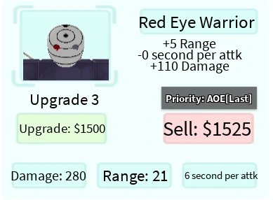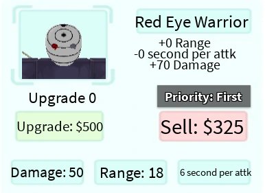 Red Eye Warrior é um personagem terrestre 5 estrelas de All Star Tower Defense baseado em Obito Uchiha de Naruto.