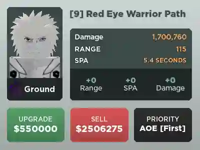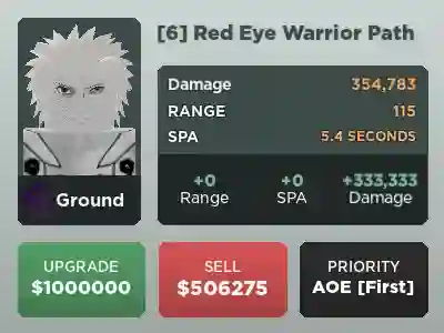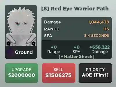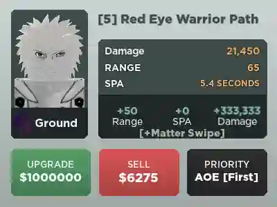 Red Eye Warrior Path é um personagem 6 estrelas de All Star Tower Defense baseado em Obito Uchiha de Naruto Shippuden, o Sábio dos Seis Caminhos.