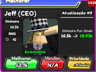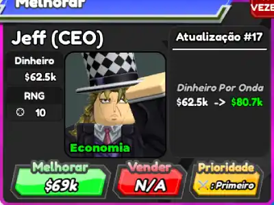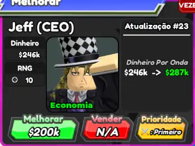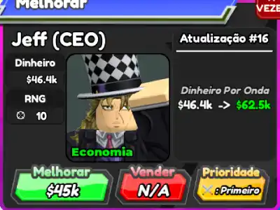 Para quem não assistiu o anime, Robert E. O. Speedwagon era inicialmente um bandido em Londres, mas após encontrar Jonathan Joestar, ele se tornou um aliado leal. Uma curiosidade interessante é que ele fundou a Speedwagon Foundation, uma organização que apoia a família Joestar em batalhas épicas. Em All Star Tower Defense, sua função de gerar dinheiro reflete sua capacidade de apoiar seus aliados, assim como fez no anime!