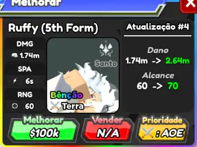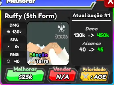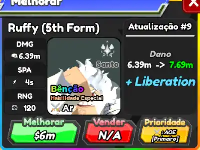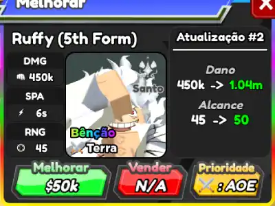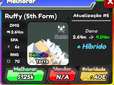 Ruffy (5th Form) é um personagem híbrido 7 estrelas de All Star Tower Defense baseado em Monkey D. Luffy de One Piece.
