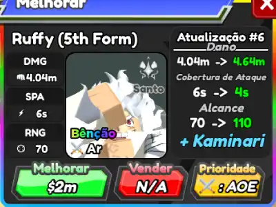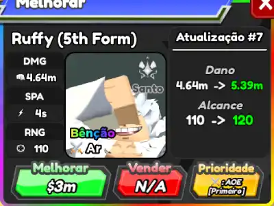 Até agora Ruffy (5th Form) tem o segundo maior círculo de ataque do jogo e no seu sétimo upgrade ele ganha duas habilidades:
