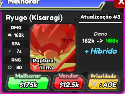 Ryugo (Kisaragi) é uma personagem híbrida de 6 estrelas no All Star Tower Defense, inspirada em Ryuko Matoi de Kill la Kill.