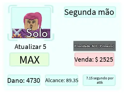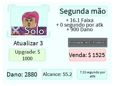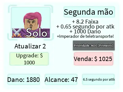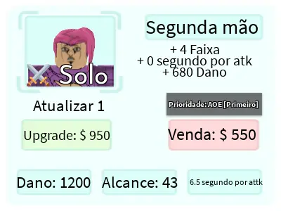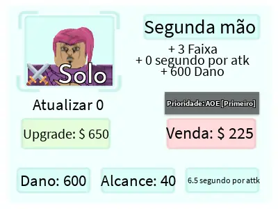 Second Hand é um personagem terrestre 4 estrelas de All Star Tower Defense baseado em Vinagre Doppio de JoJo’s Bizarre Adventure Part 5: Vento Áureo (Golden Wind).
