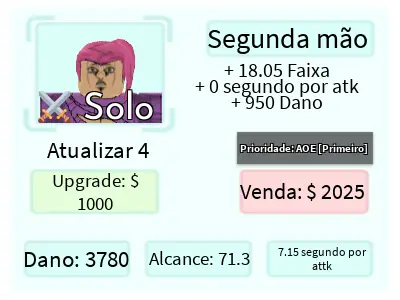 Depois de utilizado este personagem pode ser vendido pela metade do custo de uso inicial mais upgrades.