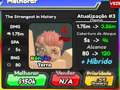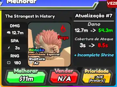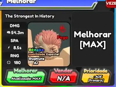 Ryomen Sukuna 7 estrelas é o fim da jornada de evolução para o The Strongest In History. Ele é um personagem híbrido em All Star Tower Defense – ASTD, possui um dano alto e a maior área de ataque do jogo. Jujutsu Kaisen está muito bem representado.