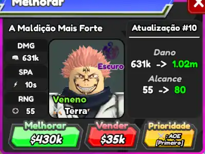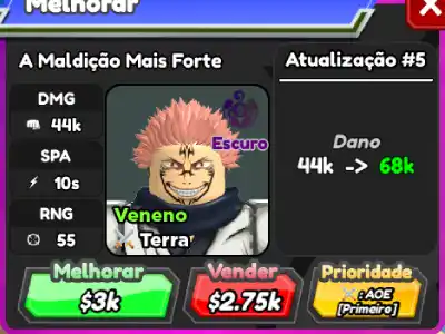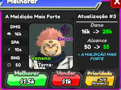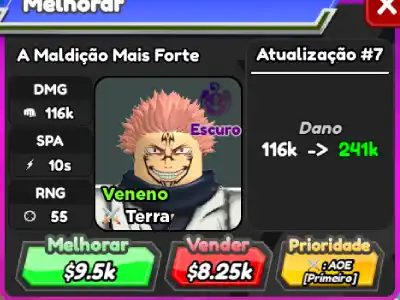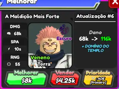The Strongest Curse é um personagem terrestre 6 estrelas de All Star Tower Defense baseado em Ryomen Sukuna de Jujutsu Kaisen.