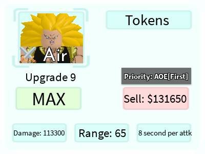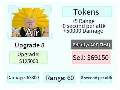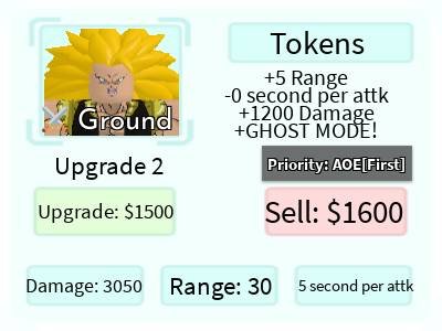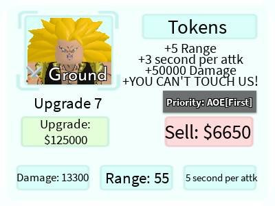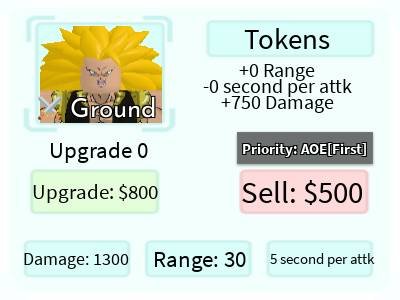 Tokens é um personagem terrestre de 6 estrelas de All Star Tower Defense baseado em Gotenks Super Saiyan 3 de Dragon Ball Z e Dragon Ball Super quando Goten e Kid Trunks se fundem.
