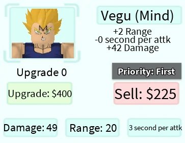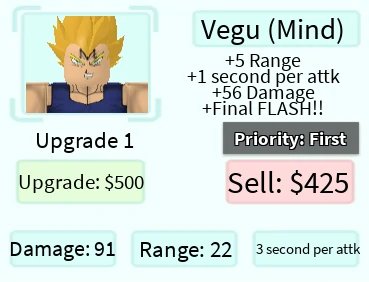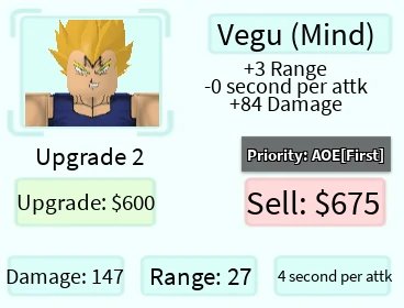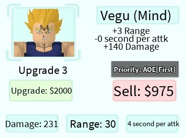 Vegu (Mind) é um personagem 5 estrelas e cone aoe baseado no Vegeta (Majin) de Dragon Ball Z.