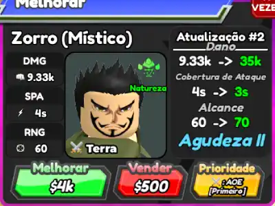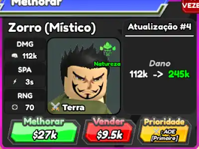 Zorro Mystical é um personagem terrestre 6 estrelas de All Star Tower Defense baseado em Dracule Mihawk de One Piece.